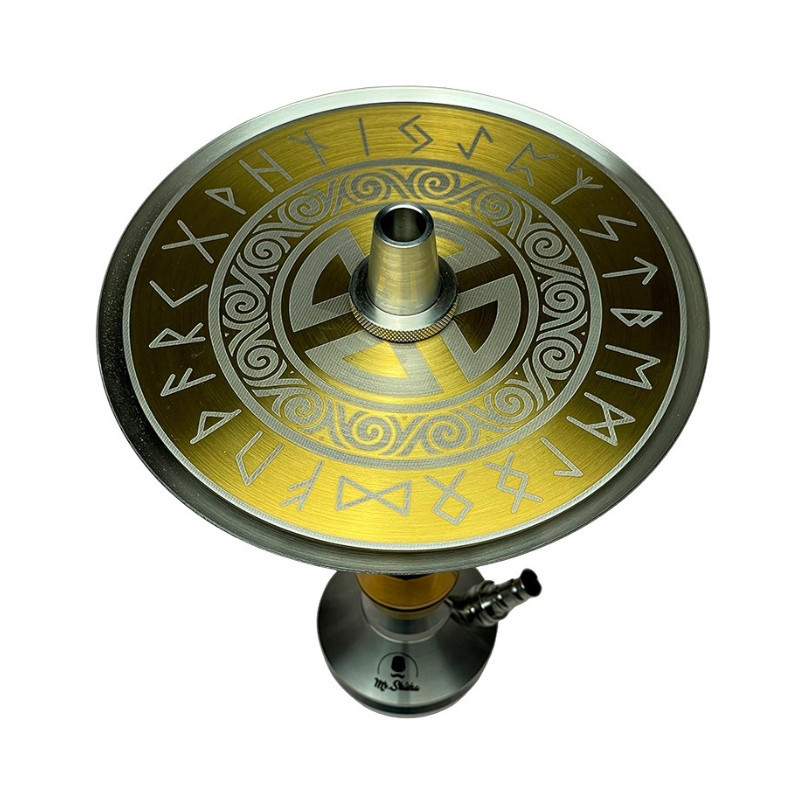 La cachimba Mr. Shisha Valhalla es una shisha de acero inoxidable de la mejor calidad, que cuenta con un doble plato con grabados exclusivos, así como 3 purgas independientes configurables hasta en 11 posiciones distintas.