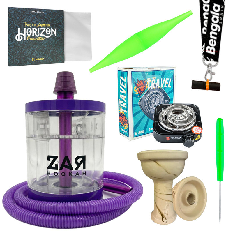 La ZAR DINY incluye manguera flexible, pinzas y todos los elementos necesarios para empezar a usarla desde el primer momento, facilitando el montaje y el manejo incluso para usuarios con poca experiencia. Su formato portátil permite transportarla fácilmente, siendo perfecta para casa, reuniones con amigos o como cachimba secundaria.