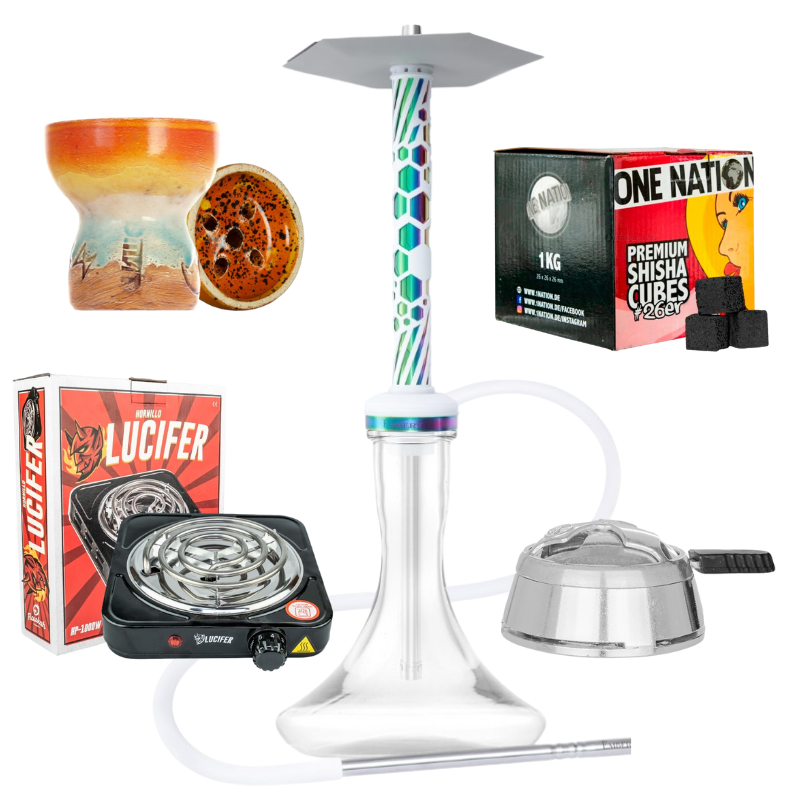 Esta increíble cachimba está compuesta en su totalidad por materiales de primera calidad con un cubreplatos para el carbón.