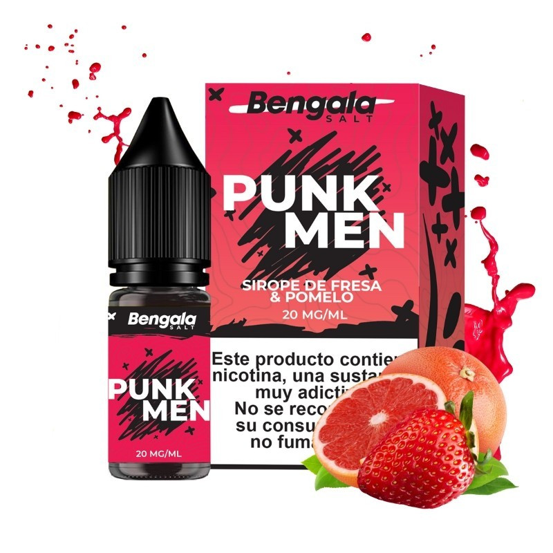 Punkmen de Bengala Salt te ofrece una combinación explosiva de sabores: la frescura ácida del pomelo rosa con la dulzura de la fresa madura. Esta mezcla frutal, jugosa y ligeramente ácida, está diseñada para quienes buscan una experiencia de vapeo frutal intensa y refrescante.